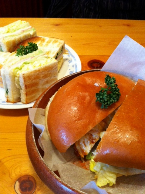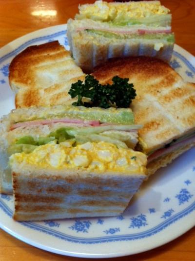 個人的には、ミックストーストが大好きです。自家製のタマゴがたくさん入ったサンドイットです。他には、きゅうりとハムも入っています。