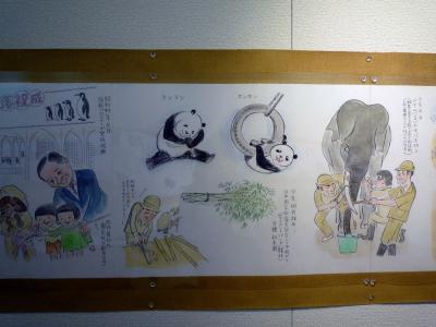 外側には、ジャイアントパンダ「ランラン」「カンカン」「トントン」など歴代パンダ達のかわいい写真も展示されていました。室内の展示エリアでは、画家の根本進さんが描いてた長さ約32mの100年絵巻や、本が展示されていました。- 旅行時期