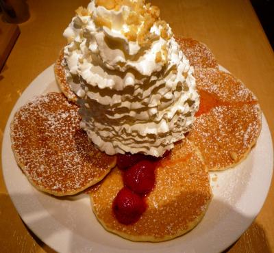 パンケーキのホイップクリームはふわふわですごいボリュームでした。- 旅行時期