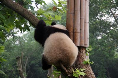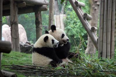 生まれたばかりの赤ちゃんパンダから大人のパンダさんまで、たくさんのジャイアントパンダが暮らしています。ネコのような鳴き声の鳥もいます。基地内はもともとあるエリアと新しくできたエリアがあり、全部見るには、半日くらいかかります。最近新しいエリアにも有料のカートが行くようになり、便利になりました。湖やお土産物屋さんやレストランもあります。