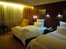 ホテルの部屋はやや古く、広くはありませんが、機能的で、手ごろな価格で利用しやすかったです。オフホワイトとブラウンの落ち着いたインテリアです。