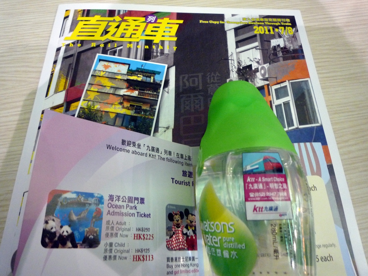 車内では、香港のオーシャンパークの割引券や香港の有名な「泰昌餅家」のエッグタルト