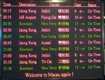香港上環(ションワン)からマカオまで60分くらいです。