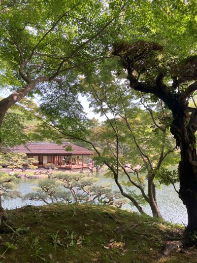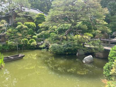 広大な庭園の中に喫茶できる建物が点在しています。写真の数寄屋風書院造「...