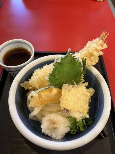 【5日目夕方18 時】初の讃岐うどんは、19時まで営業している宿泊先近...