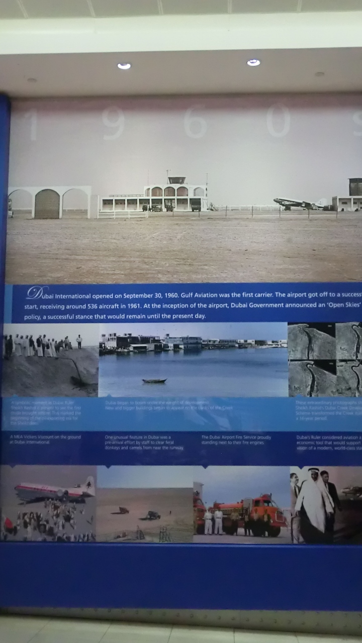 ドバイ国際空港の歴史が写真とパネルで展示してあります(ターミナル1と2の間です)。