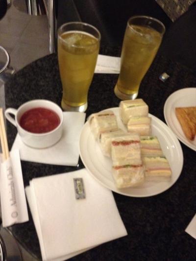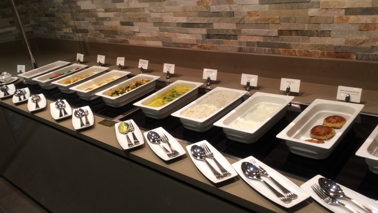 料理は肉料理、カレー、野菜を多数そろえています(ドバイのラウンジのようなボリュームはありませんが美味しいです)。シャンパンもいただけますが冷えておらず温めは残念。またジュースもピッチャーから注ぐタイプなので最初は薄めになってしまいます(サーバスタンドが望まれます)。