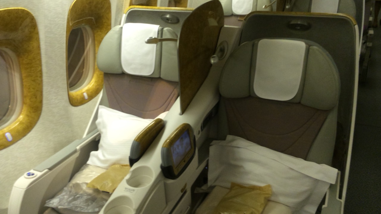 成田空港に専用ラウンジ開設でますます快適。ドバイまでの10時間もあっという間です(B777-300ER)。