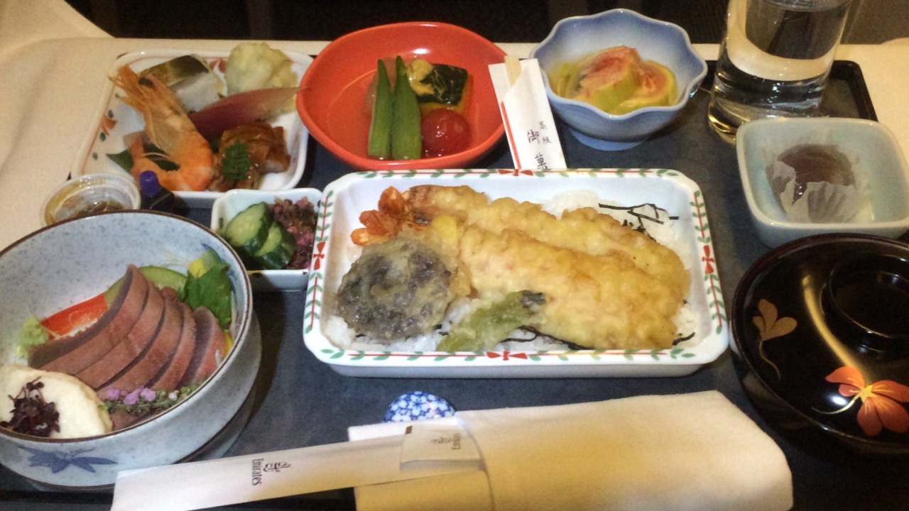 食事は定評あるエミレーツなのでボリュームがあって美味しいです。日本路線の和食は、天ぷらが油っぽかったのが惜しまれます。