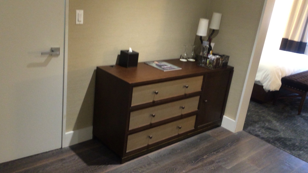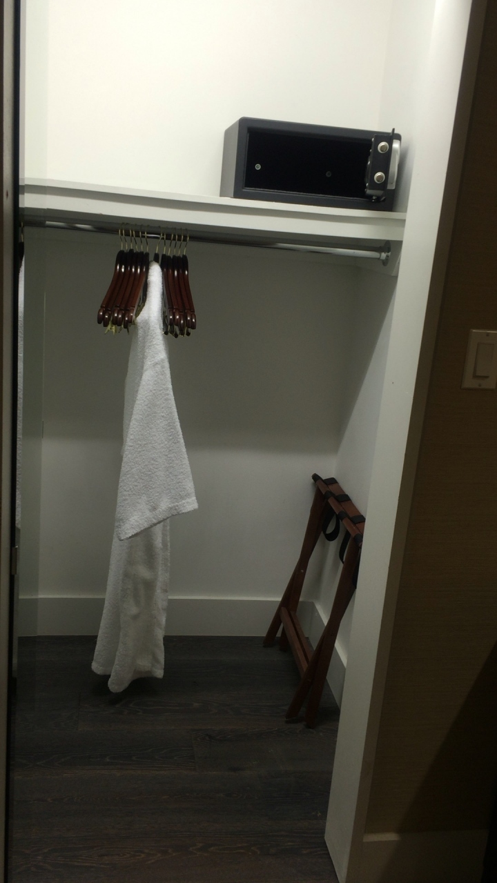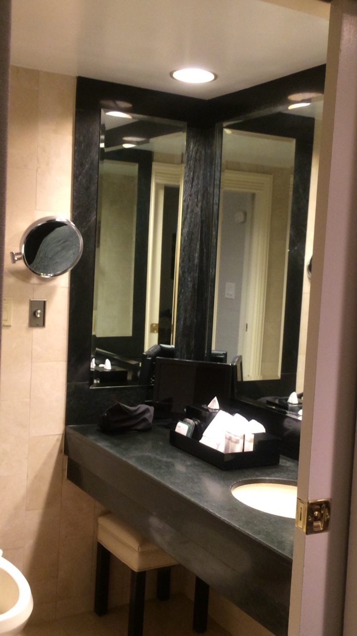 "Deluxe Studio"はバスタブがありませんが、旅先ではシャワーしか使わないので問題ありません。二人で宿泊しましたがバスローブは一つしか用意されていませんでした。前回泊まったニューヨーク市内の別のホテルでも同様でしたので、これが一般的なのでしょうか(必要ならフロントに要求するということかな)。