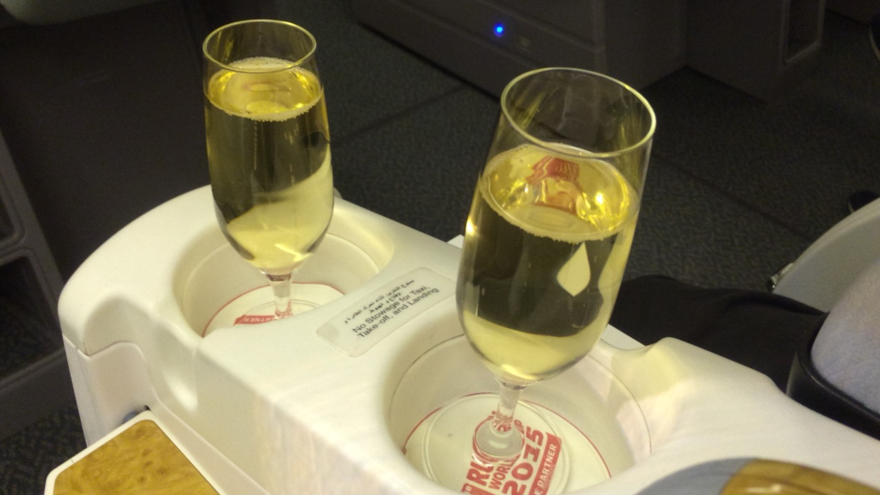 空港のエミレーツラウンジでも十分でしたが話のタネに利用しました。