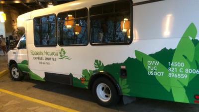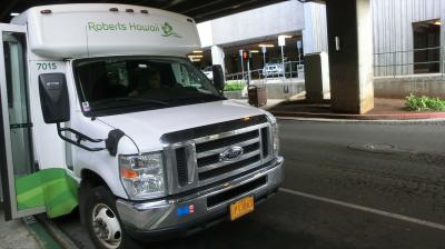 空港とスターウッド系列ホテル(注)専用のシャトルバスも運行しています(片道 16$ 往復 30$ /大人一人)。ホノルル空港の個人出口でピックアップしてくれます。