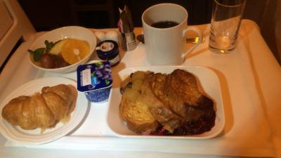 成田−ドバイ間は成田離陸後夕食、着陸前の朝食と二回の食事提供があります(いずれも和食も選べます)。