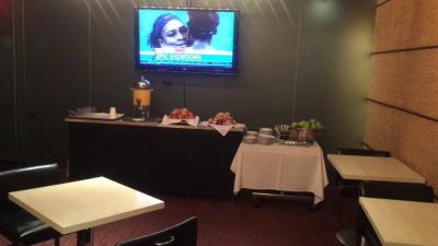 - 料理は美味しく、シャンパンもあります。シャワーも利用可能。ラウンジ内専用のWiFi環境も完備。