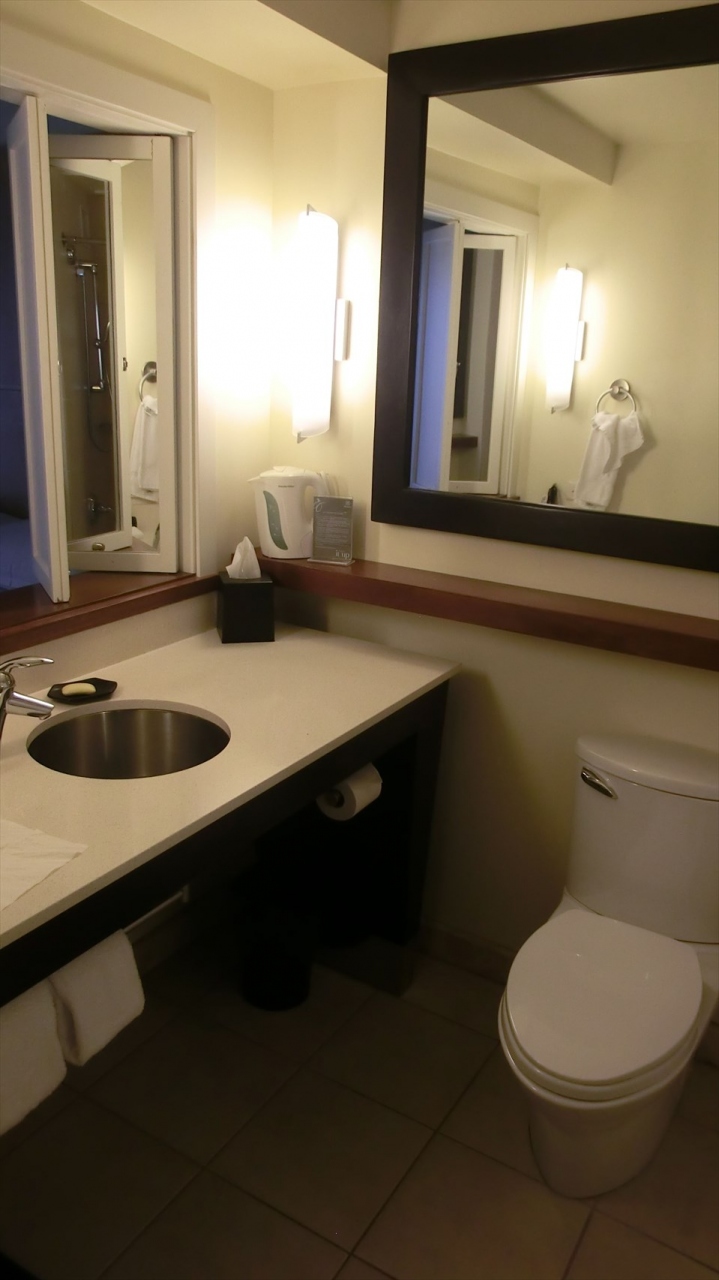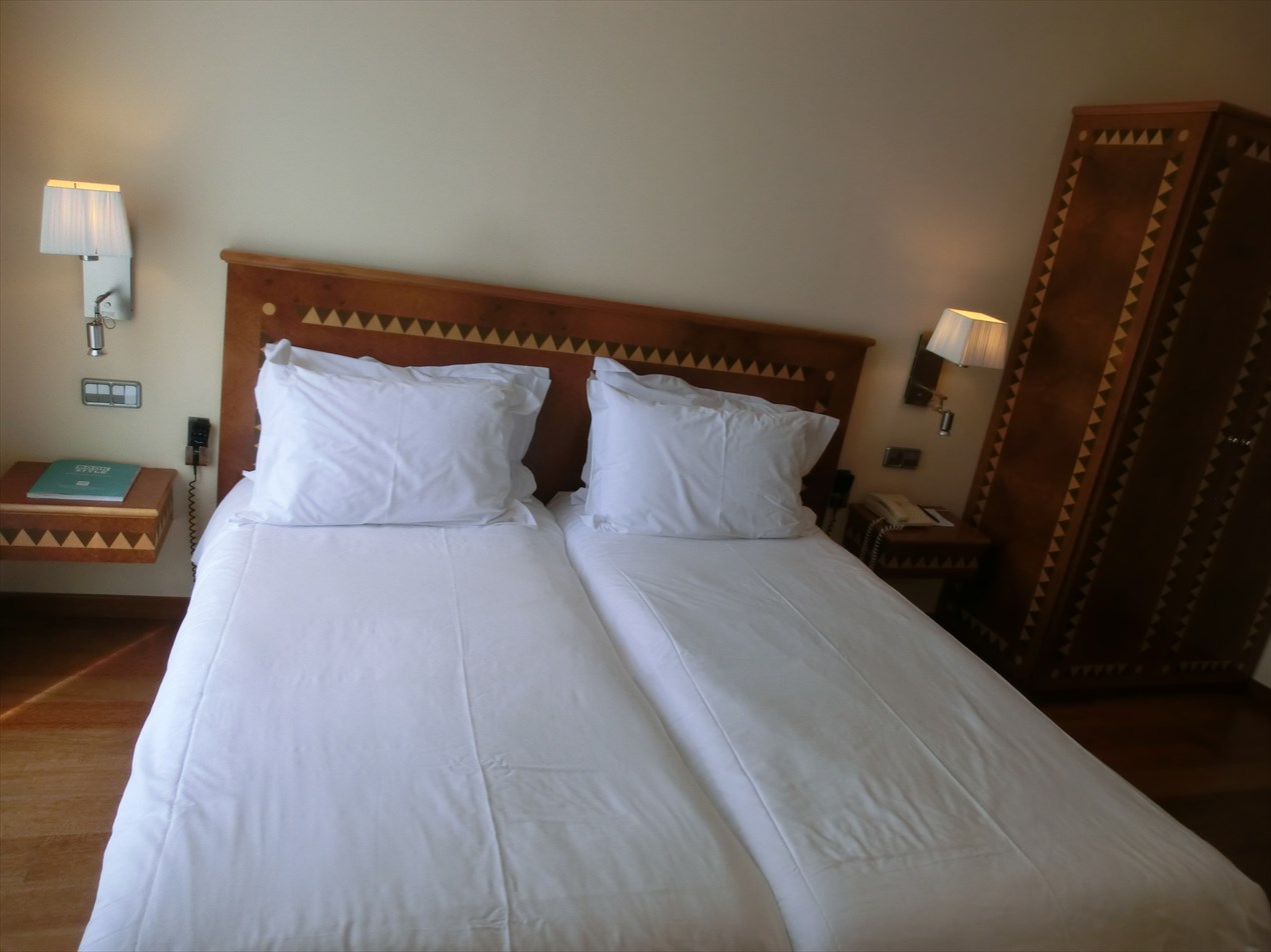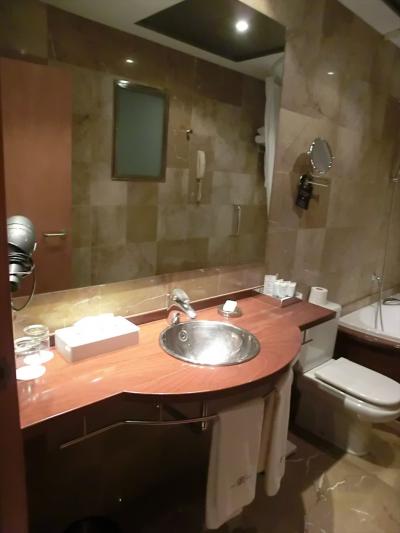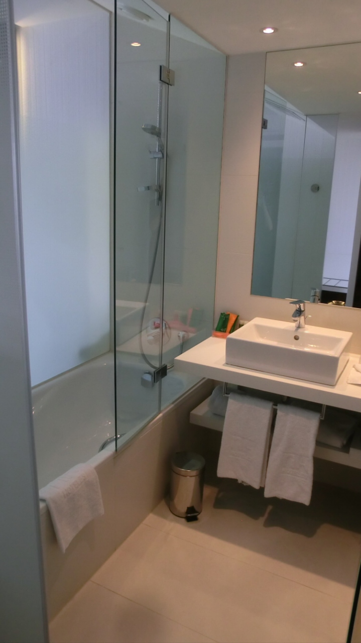 部屋は欧州の一般的なホテル同様に狭いですが、スーツケースを載せる台があるので床に大開きはせずにすみます。洗面所、バスの水/湯の出は問題ありません。