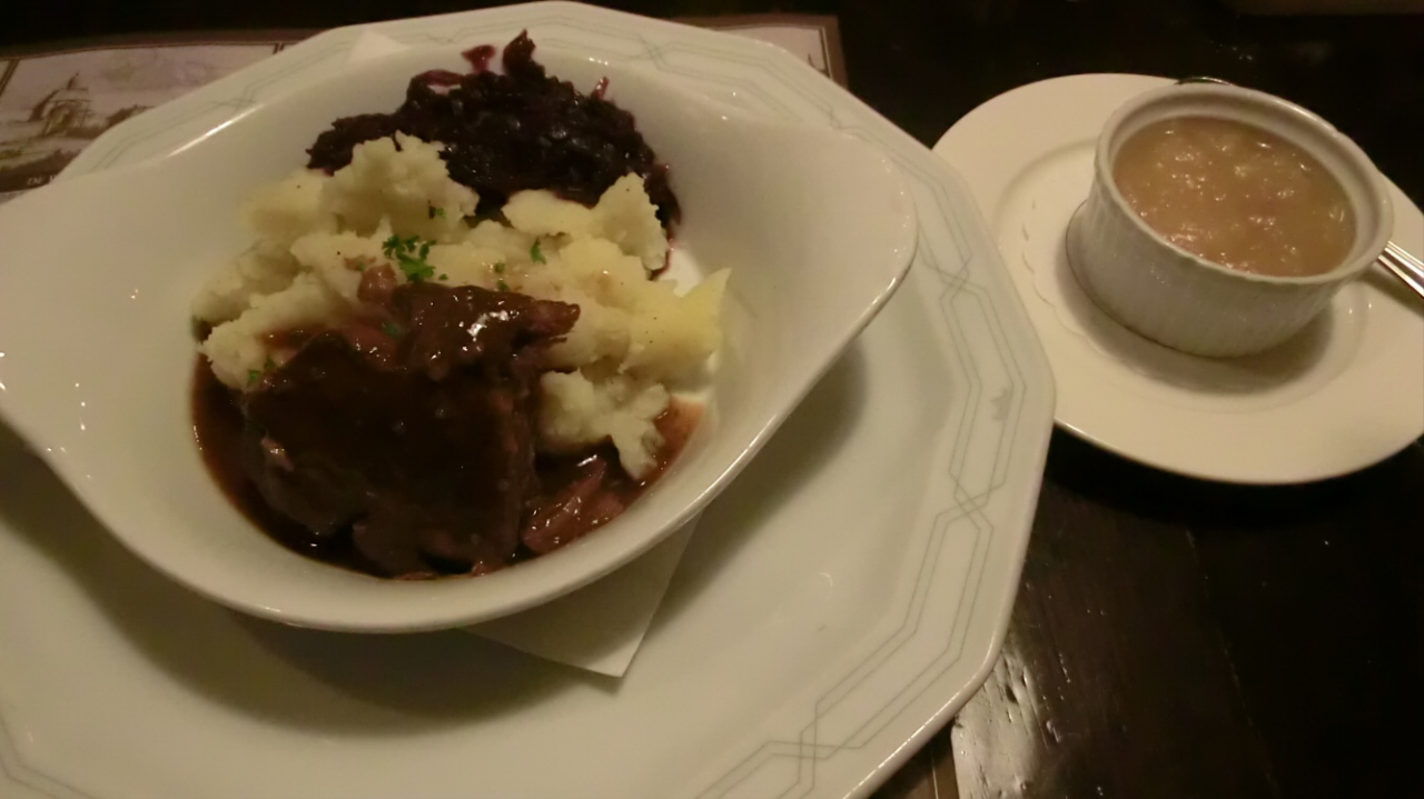 ?牛肉の煮込み(ポテトペースト&紫キャベツ&アップルムース 16.75EUR