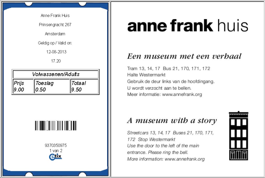 アンネ・フランクの家”Anne Frank Huis”はアンネ・フランク(アンネリース・マリー・フランク:Annelies Marie Frank)一家他8人が1942年からの約2年間、ナチス・ドイツの迫害から逃れるため隠れ家として住んでいた家を利用した博物館(館内は撮影禁止)です。