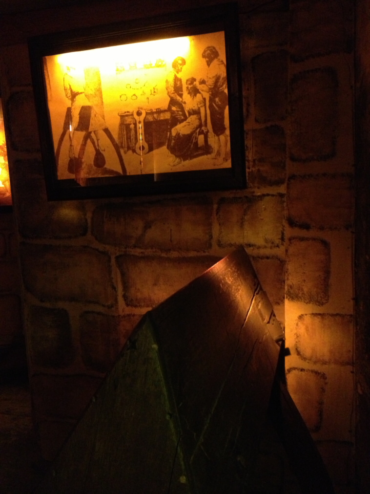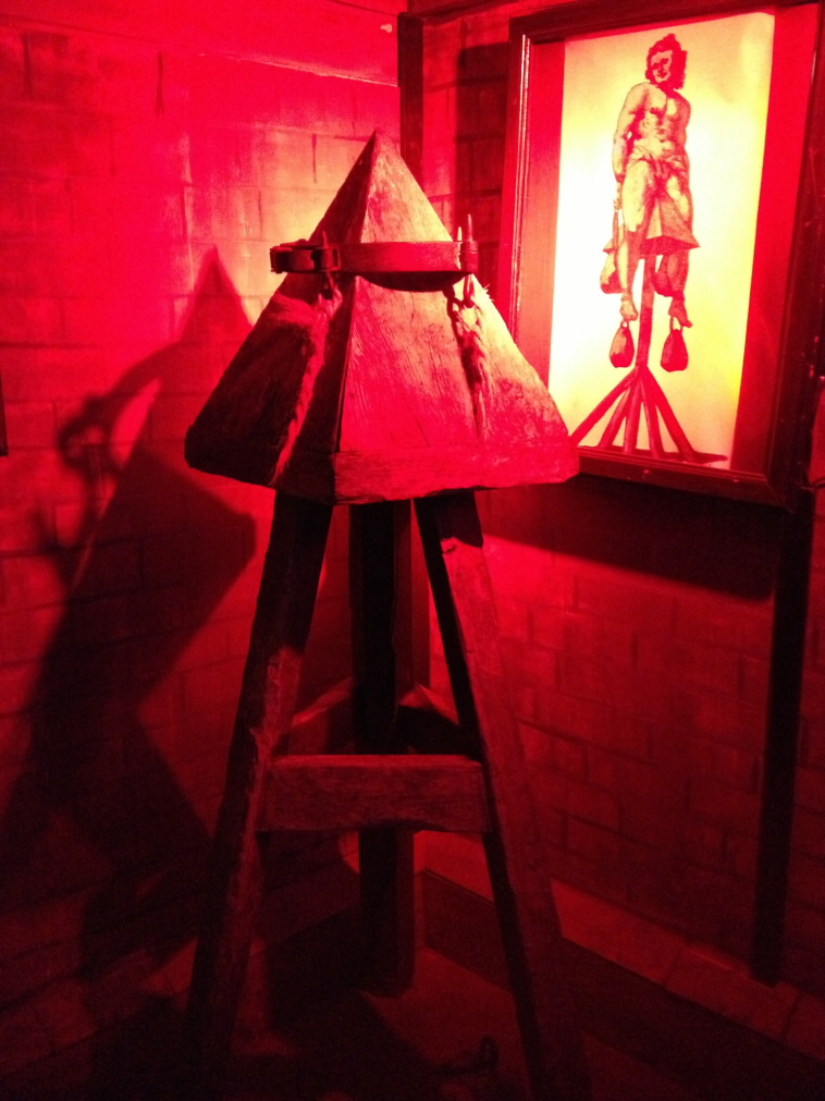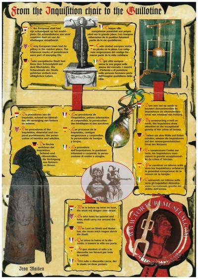 中世の欧州でいかにも使われそうな(使われた)拷問の器具が展示されています。動作するわけでも無く、(こんな感じであったろうという)拷問の場面が説明文の代わりに掲示されています。江戸時代の日本でも"石抱き"なんていう拷問がありましたっけ。