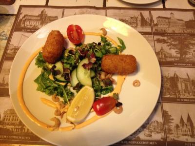 ?コロッケ(チーズ/小エビ、各2ヶ/皿) 8.75EUR ←高め