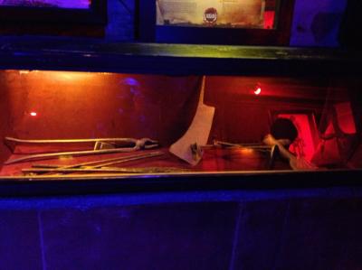 内部は雰囲気を出すために薄暗く、赤系/青系の照明を多用しているので、カメラ撮りは苦労します(フラッシュはOKのようです)。
