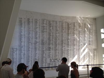 先ずビジター・センターでパールハーバー攻撃の記録映像を観た後、沈没した戦艦の上に建てられた海上のUSS アリゾナ記念館へシャトル・ボートに乗って移動します。