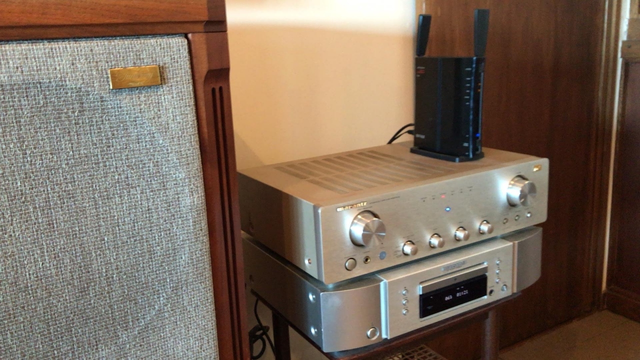 marantzのアンプ/CDプレーヤー、TNNOYのスピーカーが目立ちます。