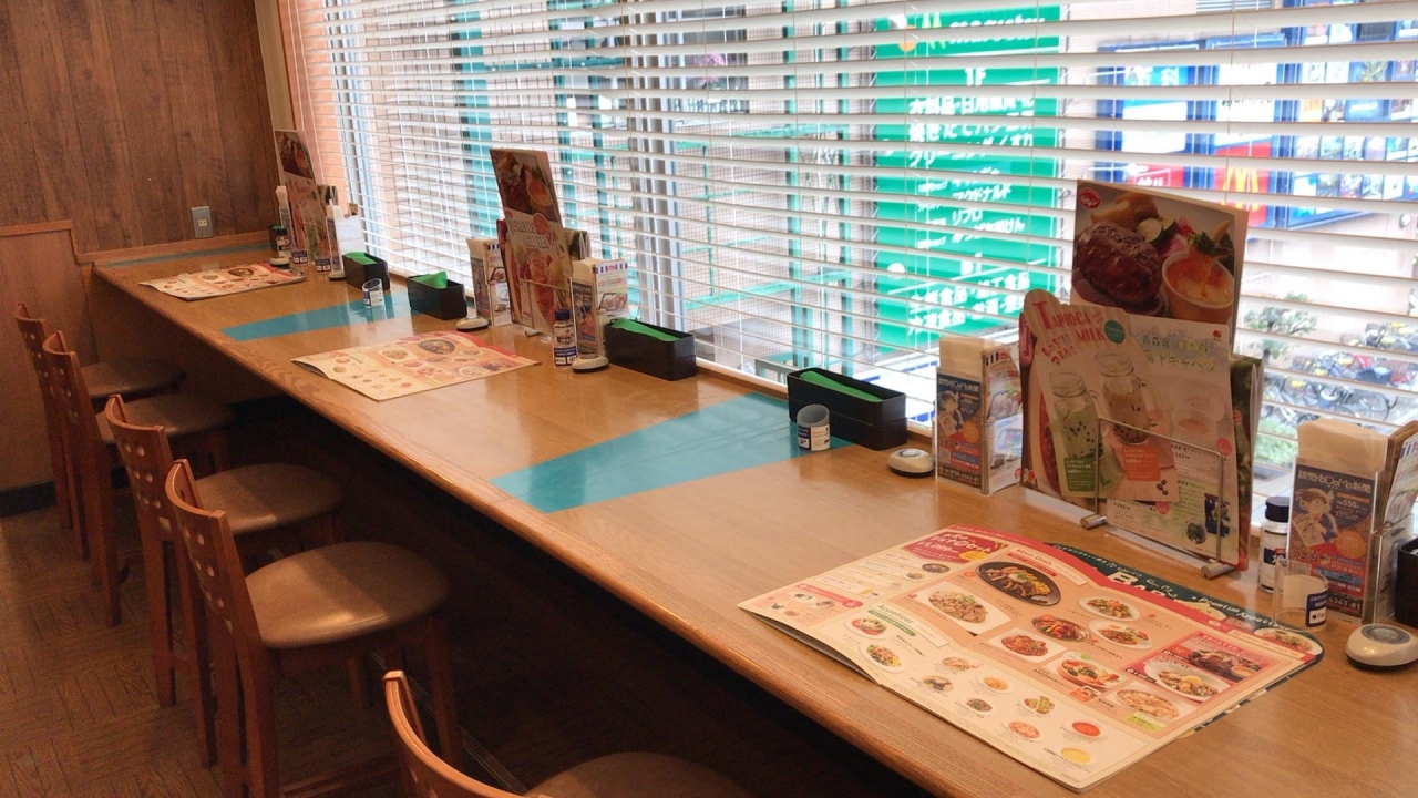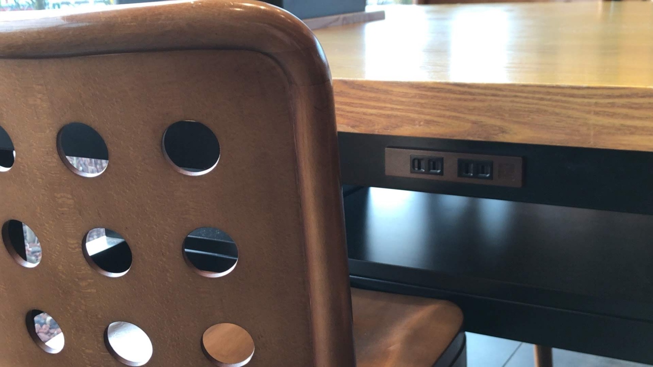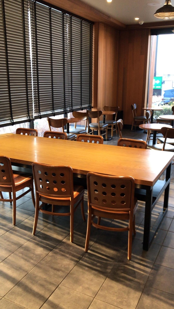 店内の席にはパソコンやスマホ充電用に利用できるコンセント中央の大きなテーブル(8席)だけのようです。