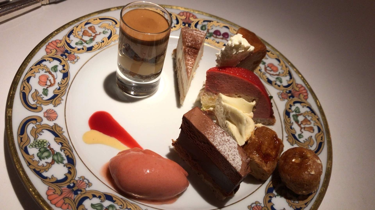 フランス料理はやはりジビエです。でもデザートもいっぱいいただきました。