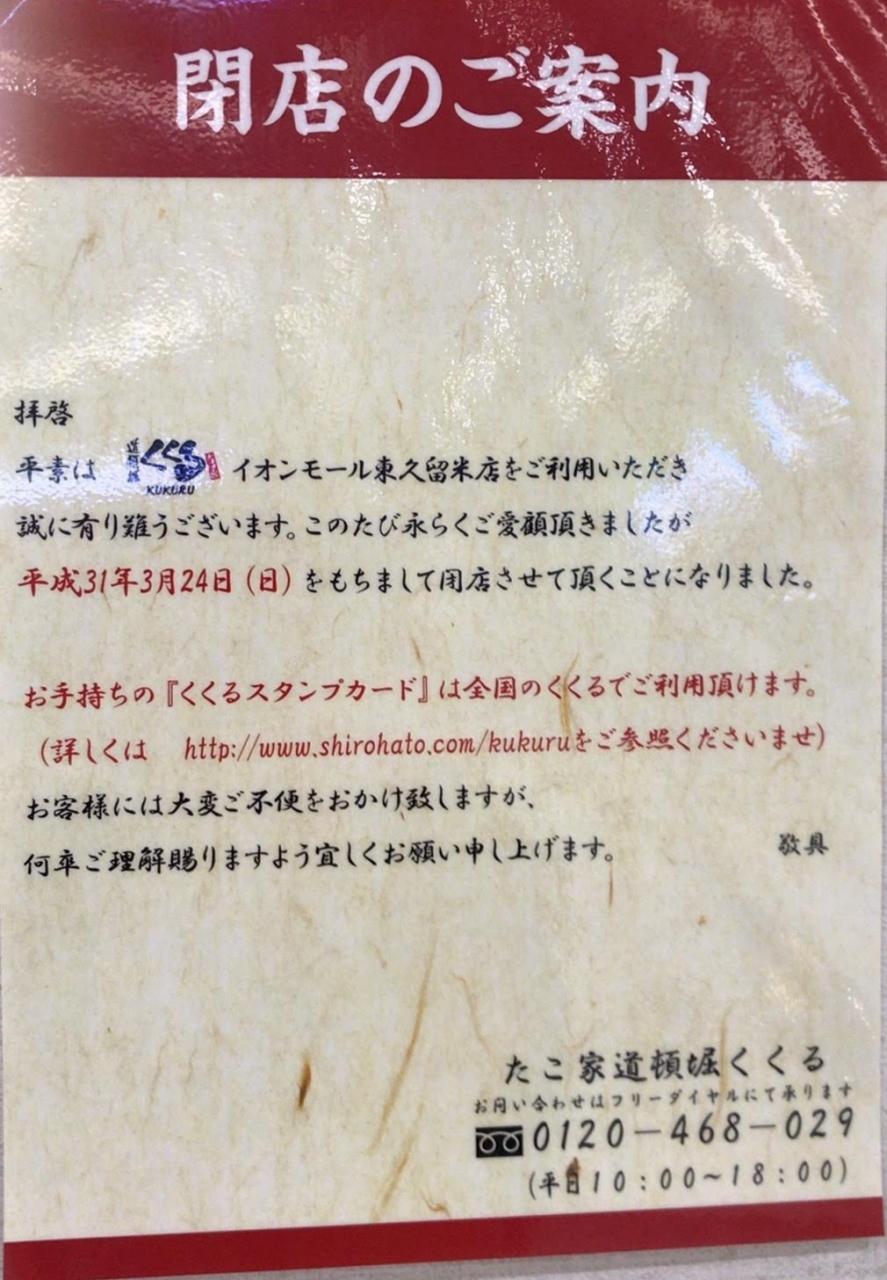 イオンモール東久留米での買い物合間に、チョイ休憩で利用していましたが、残念です。