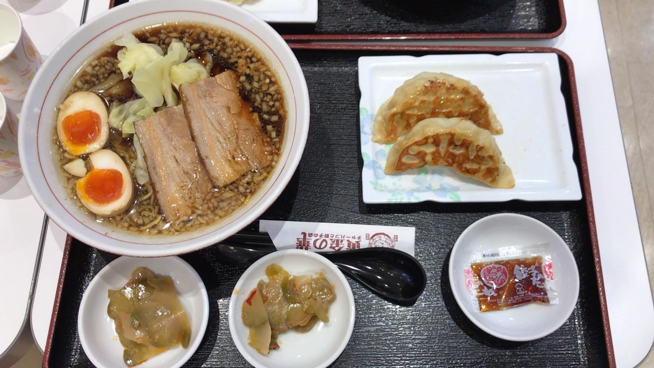 和風醤油ラーメン(ジャンボ餃子セット)、黒醤油ラーメン(餃子セット)をいただきました。