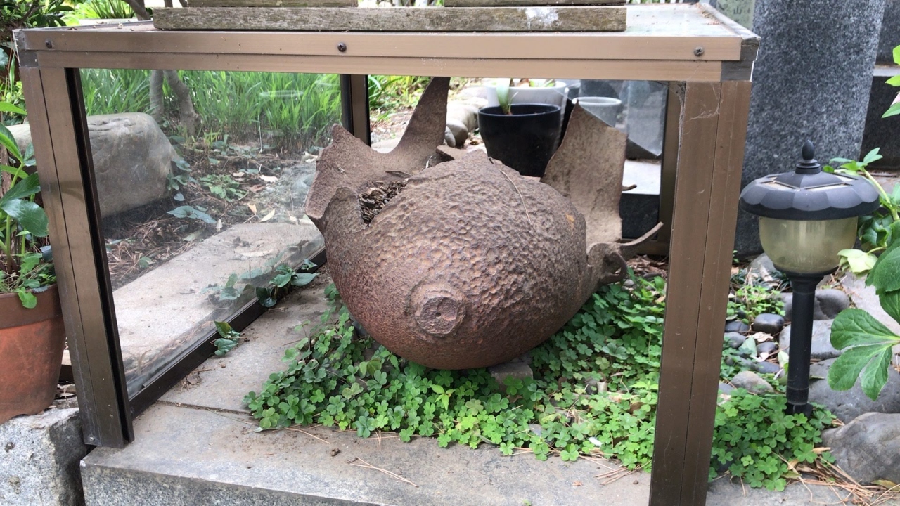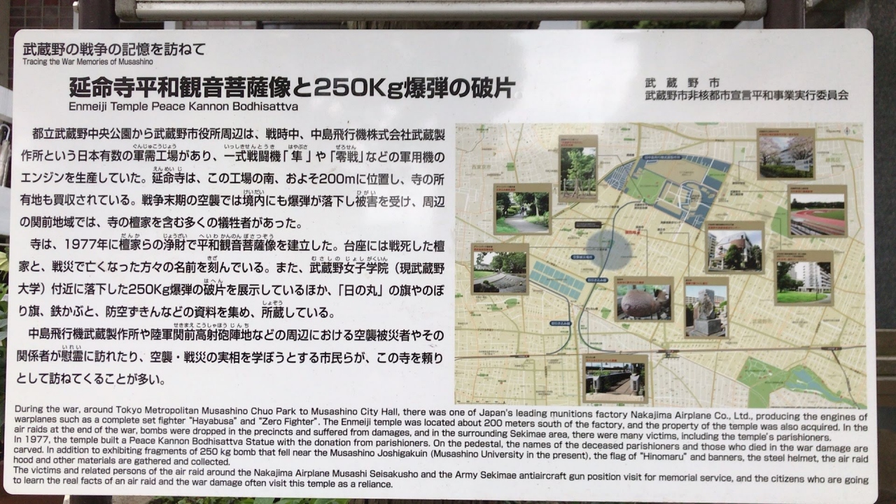 この辺一体は旧中島飛行機製作所があったため、太平洋戦争により現在の武蔵野大学付近に投下された250kg爆弾の破片が屋外展示されています。ポツんと置かれているだけです。- 旅行時期