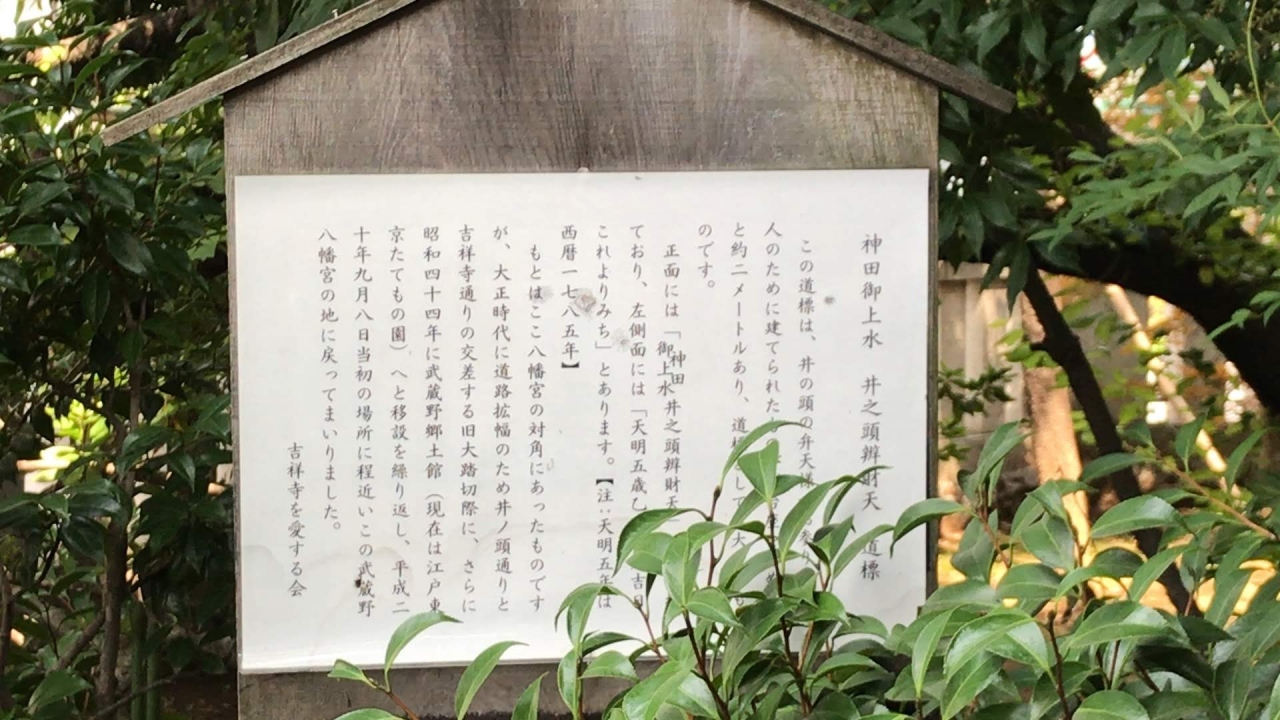 江戸時代の明暦の大火で焼け出された小石川水道橋外吉祥寺門前町の人々がこの地に移住を命じられて、吉祥寺村を開村し、この八幡宮を鎮守様としたといわれています。