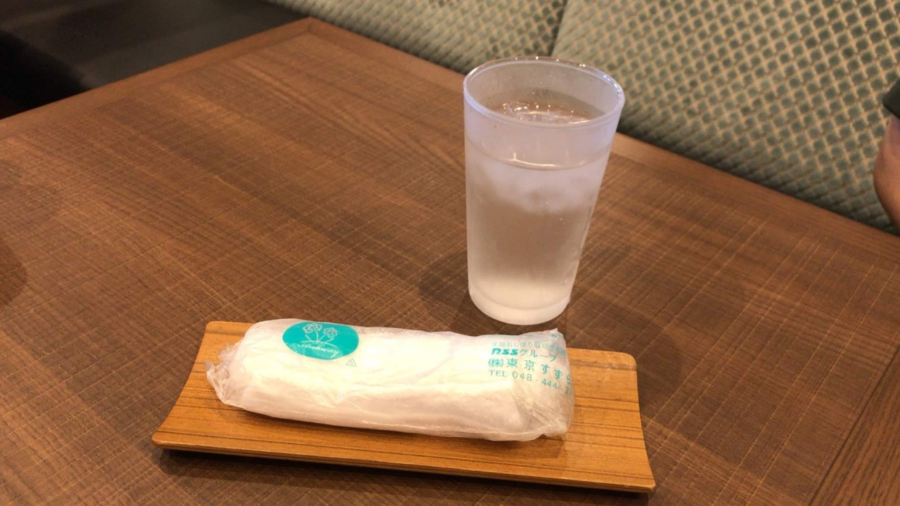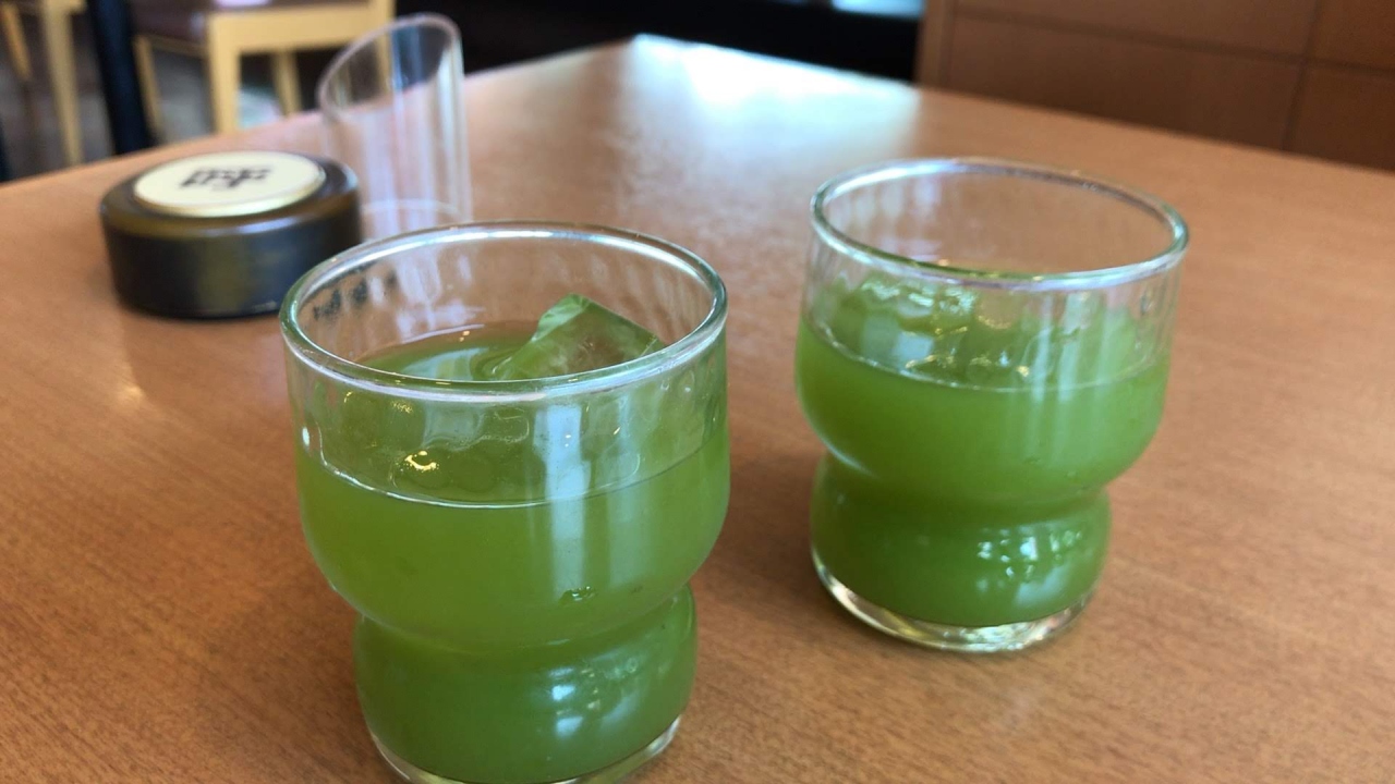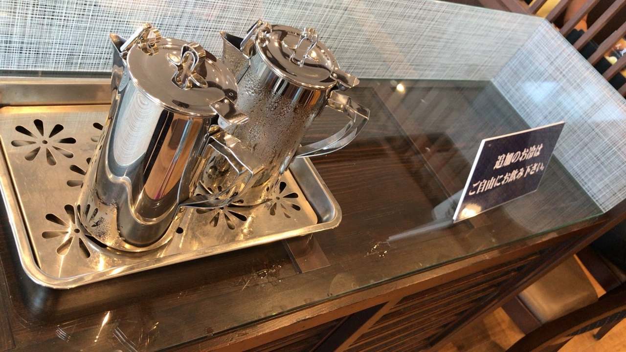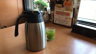 この季節だけもしれませんが、水(お冷)ではなく冷たい緑茶(粉茶)がポットで用意されます。今年(2018年)のような猛暑ではありがたいです。