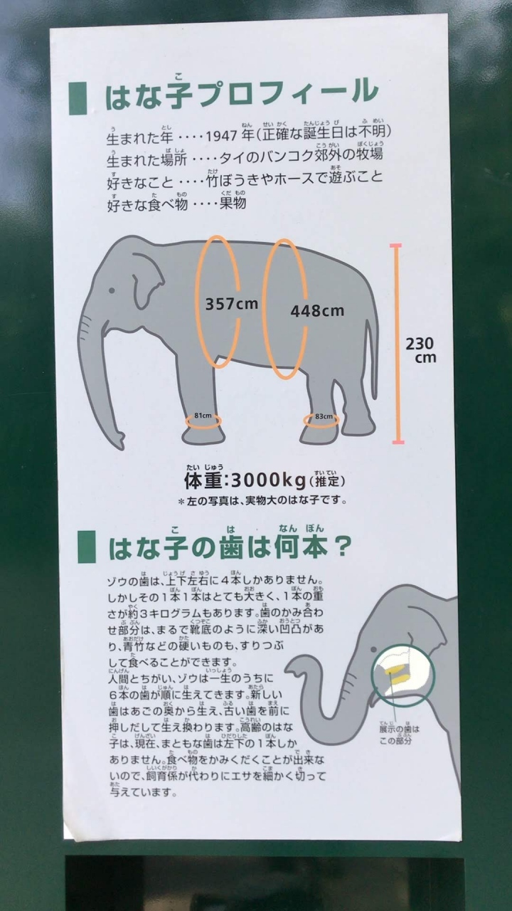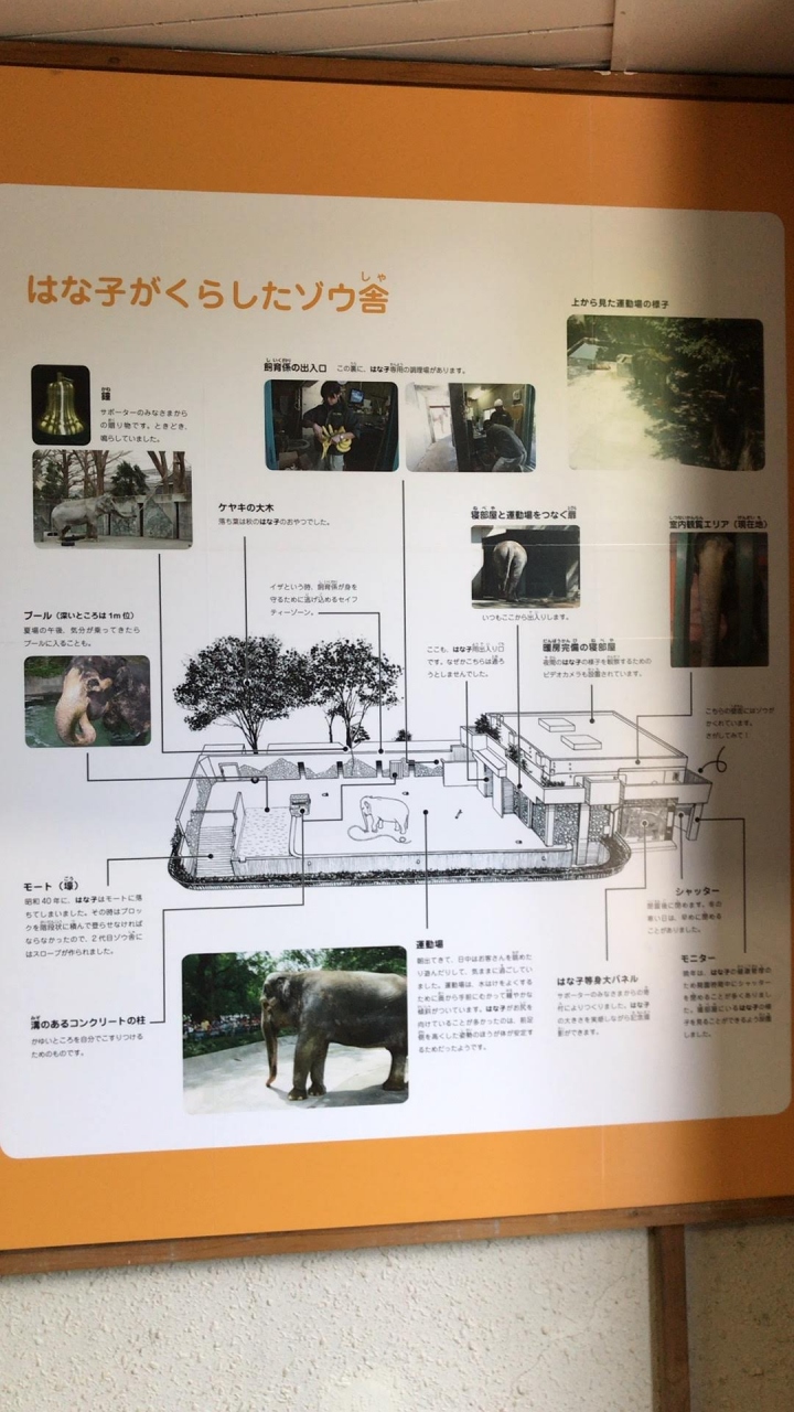 2016年5月26日に死んだ"小さな動物園"の”大きなゾウ”ことはな子が飼われていたゾウ舎がそのまま残っています。ゾウ舎の寝部屋にはな子の一生を説明したパネル類が掲示・展示されています。吉祥寺駅北口にあるはな子像の銅像原型が彫刻館で展示されています(彫刻館内は撮影禁止です)