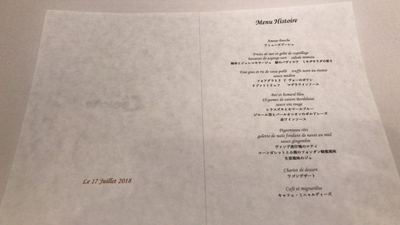 ランチメニュー"Menu Histoire"-季節の食材で表現した料理長お勧めコース-をいただきました。