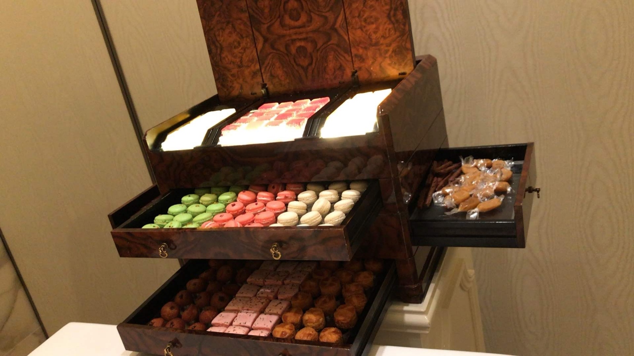 食後のデザート・ワゴンや"宝石箱"から好きなものを好きなだけ頼めるのでさらに大満足でした。- 旅行時期