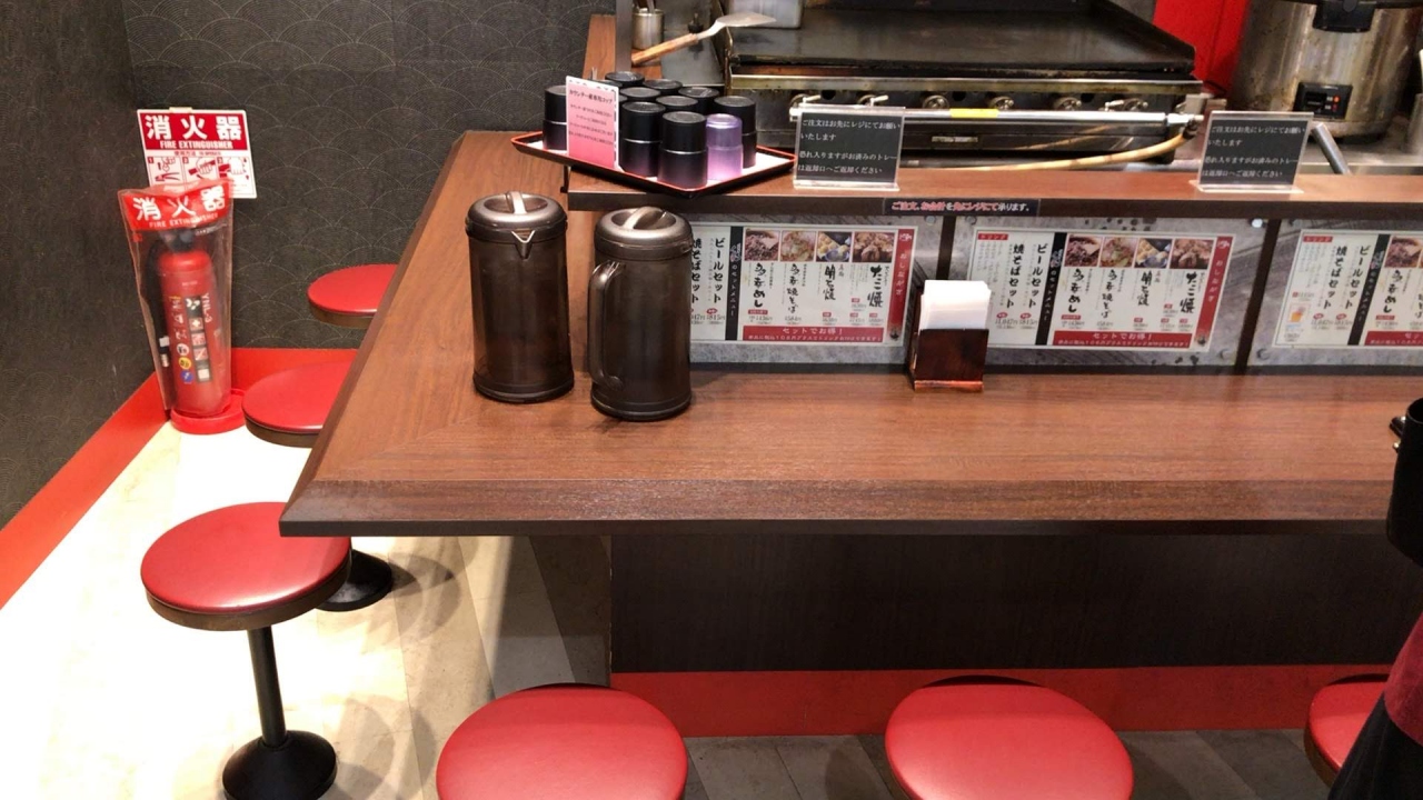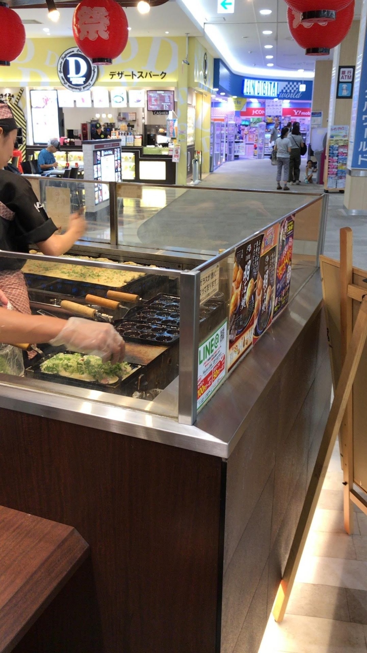 フードコートですが、この店舗には6席程のカウンター席があるので少人数ならカウンター席でたこ焼きを食べることができます。