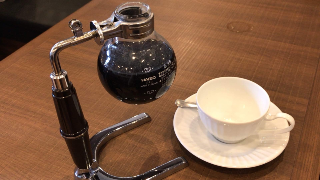 ここのコーヒーはサイフォン式で通常よりもコーヒーを細目に挽いて短い時間で抽出するため煮沸時間が短く、雑味が抑えるそうです。サイフォンにはコーヒーカップ2杯分はありますので割安かもしれません。食事はバケットサンドはボリュームがありますが、他の食事は価格の割りにボリュームが少ないように感じました。