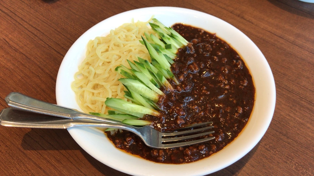 ジャージャー麺(冷):冷水にくぐらせていないので冷たくなかったです。ぬるいです。