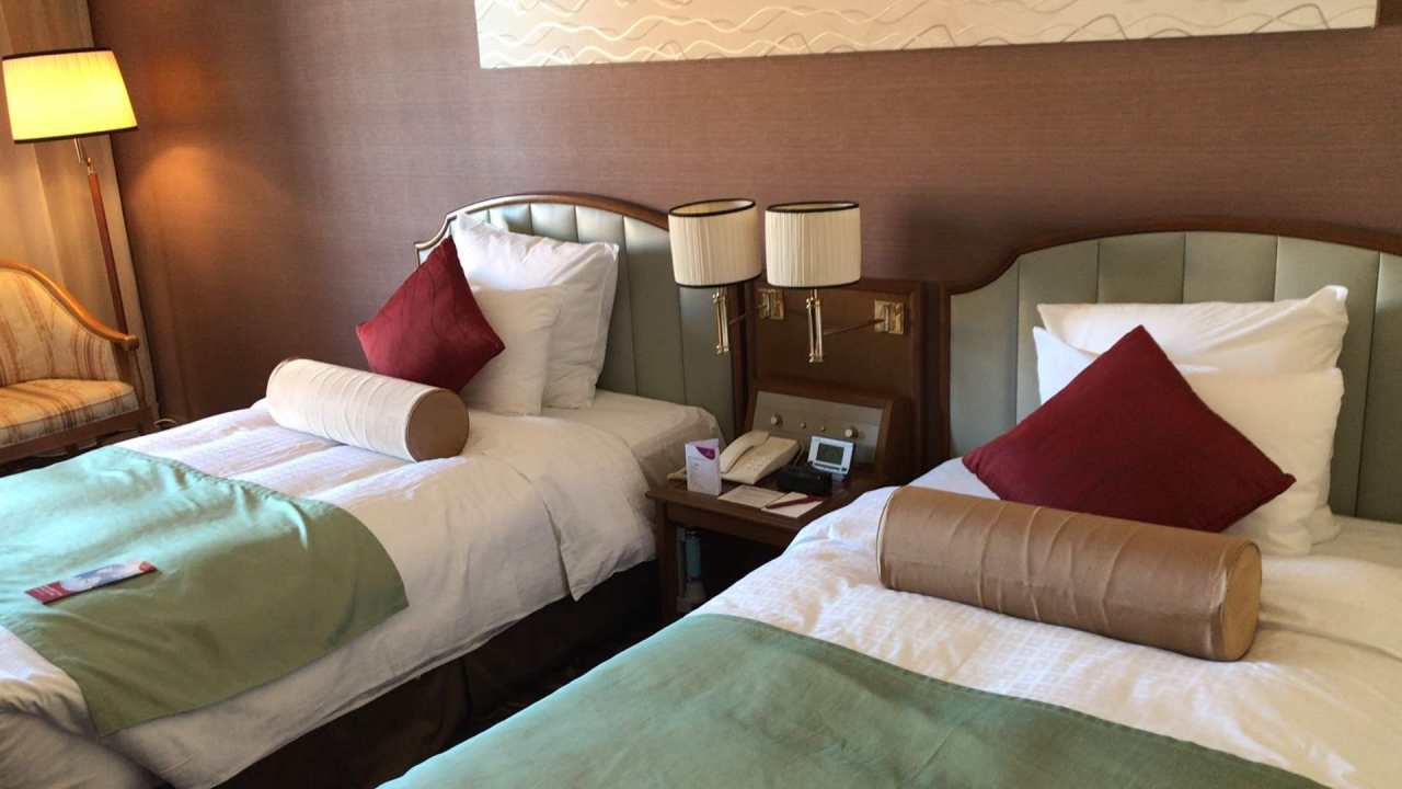 宿泊したデラックスルームは室内(ベッドルーム)は広いですが、バス・トイレはビジネスホテルのユニット構成で狭いです。