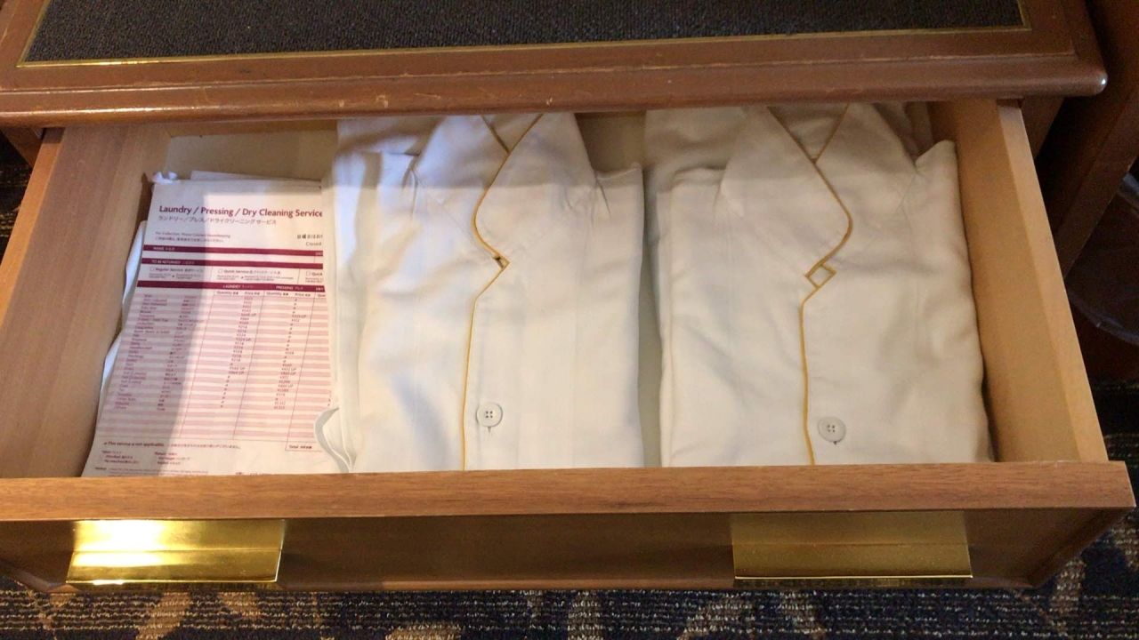 室内履き(スリッパ)とナイトウェア(浴衣もどき)が備え付けられていました。
