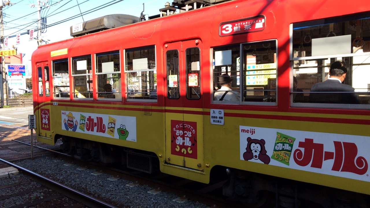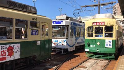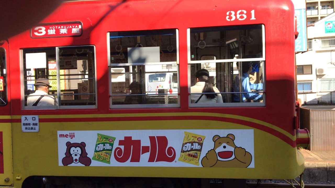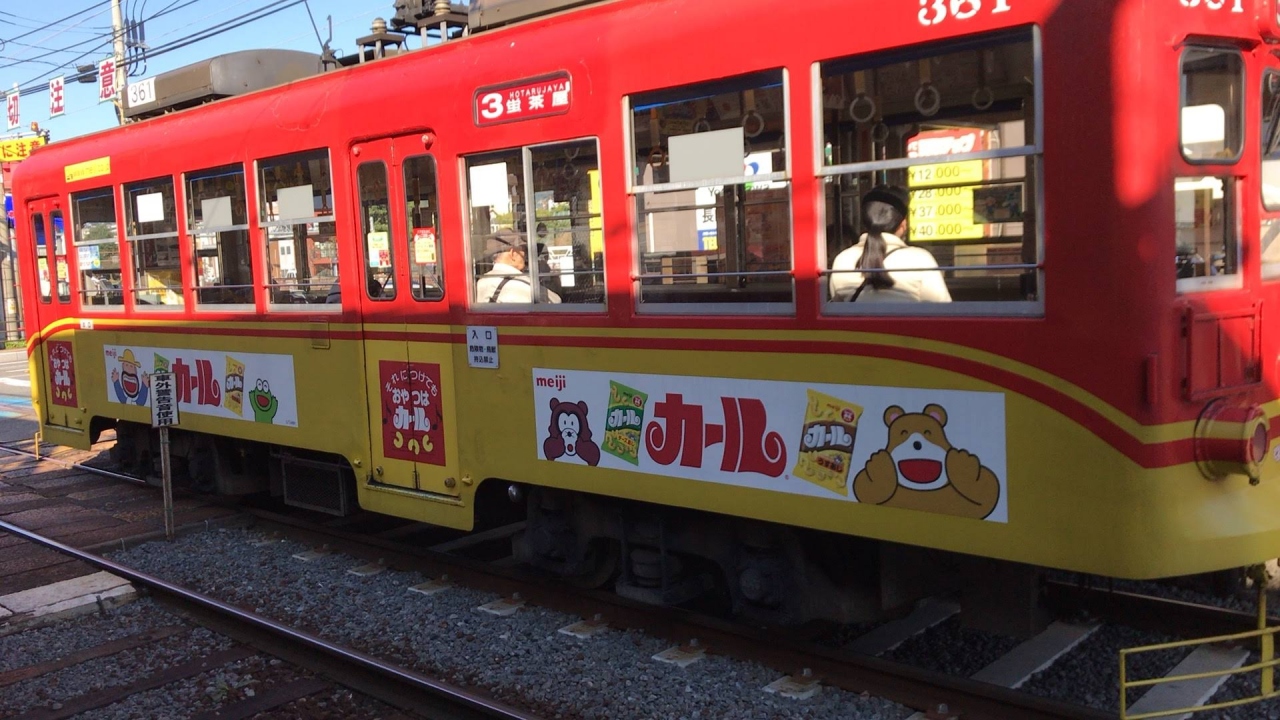 昔ながらの路面電車や最新の低床電車が走っています。車体の塗装を見るのも楽しみです。私のお気に入りは"それにつけてもおやつはカール♪"の塗装車体です。- 旅行時期