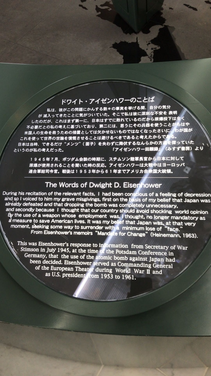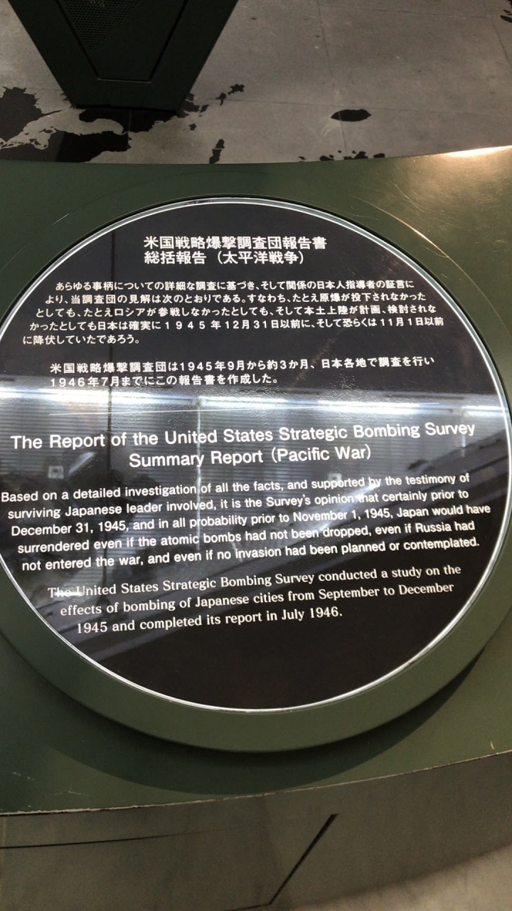 展示の最後にある米国指導者や科学者たちの声明や調査報告を見ることでこの原爆投下の無意味さが伝わってきます。