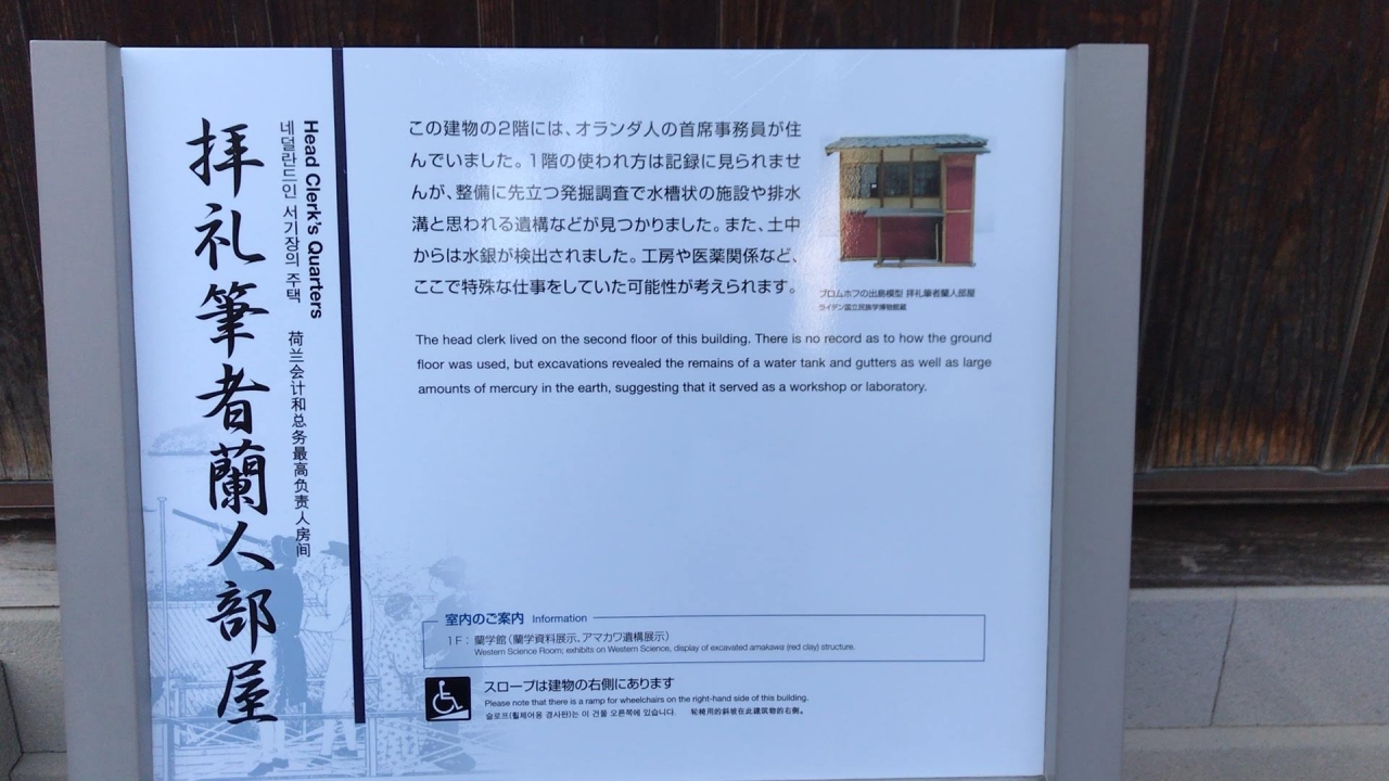 長崎の文明開化や幕末が舞台なのでシーボルトた坂本竜馬、高橋秋帆などの活躍や出島の話が中心です。長崎奉行所復元実物大展示は奉行所の構造や各部屋の説明が中心です。
