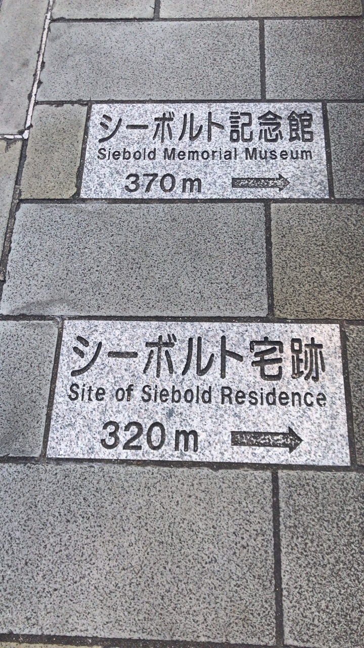 新中川町電停からシーボルト宅跡・記念館へ向かう道を"シーボルト通り"と称して、道程に案内版を設置して目指す宅跡や記念館に迷わずたどり着けるようになっています。