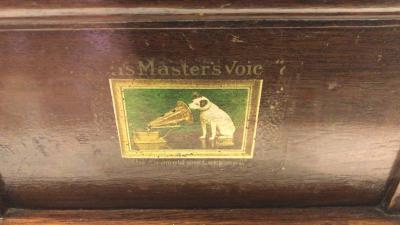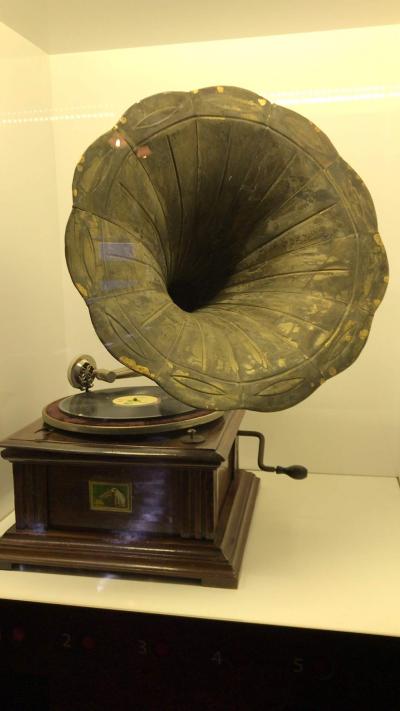 記念館の内部は三部構成です。"His Master's Voice"の蓄音機ありました。