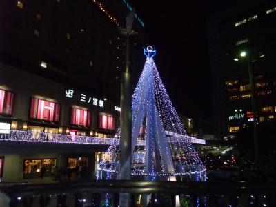 三ノ宮駅前にもツリー風のイルミネーションがあります。