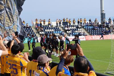 こちらはベガサポの皆様。ビジター席が狭くてチケットは争奪戦だった。