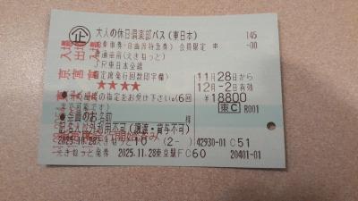 2025年11月28日から2025年12月1日までの間、「大人の休日パス (東日本)」という割引切符を利用しました。