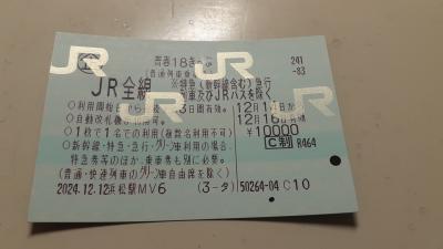 2024年12月14日から2024年12月16日にかけて3日間10,000円で利用し放題の切符を利用し、自宅の最寄駅である浜松から片道運賃で9,790円する宮城県の仙台まで往復利用しました。